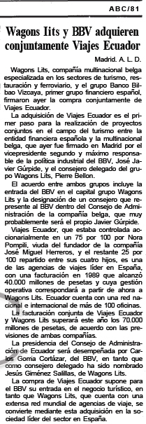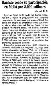 La noticia se publicó en el diario ABC, entre otros, el día 11 de Noviembre de 1.986. A la derecha mostramos un recorte del citado periódico que habla de la decisión tomada sobre la venta de Viajes Meliá; otra de las agencias de viajes españolas pioneras que cerró años mas tarde fruto de una mala gestión.